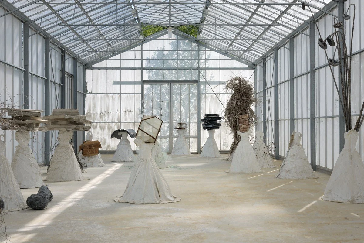 In the late 1990s the German artist Anselm Kiefer (b.1945) began creating a series of sculptures of headless female figures on the grounds of his studio-estate ‘La Ribaute’ in Barjac, France. With their bodies cast from nineteenth-century bridal gowns, on which Kiefer placed symbolic objects, such as open books, movie cameras and piles of empty rolls of film, these sculptures evoke the systematic absence of women in history as well as a lost matriarchal past. Considering the work through the lens of Andreas Huyssen’s ‘memory art’ – works of art that foreground the dialectic of memory and forgetting, preservation and destruction, past and future – this article analyses how Kiefer’s sculptures figure the Homeric sirens as a critical counterpart to Walter Benjamin’s ‘angel of history’. The discussion situates the work within the topographical context of La Ribaute and in relation to Kiefer’s longstanding engagement with women’s history and the mythical female figure, critically assessing the artist’s ambiguous relationship to feminist politics.